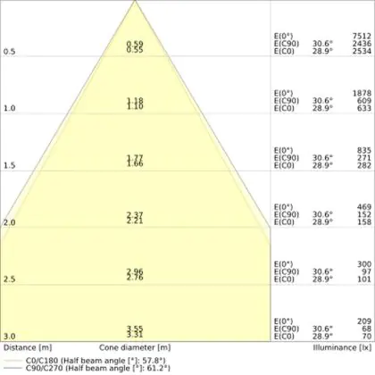 De gradenbundel geeft informatie over hoe breed het licht wordt uitgestraald. Dit zit tussen de 0 en 360 graden (D). Hoe kleiner de hoek, hoe specifieker de lichtbundel is. Over het algemeen is een smalle gradenbundel perfect voor sfeer- of accentverlichting, terwijl een brede gradenbundel ideaal is om grote oppervlaktes te verlichten.