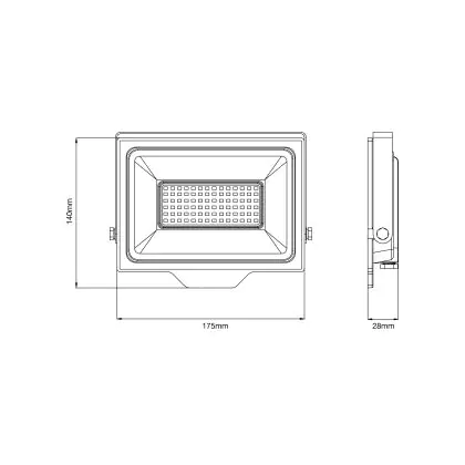 De IP-waarde zegt iets over mate van stof- en waterdichtheid van een armatuur. Het eerste cijfer betreft de stofdichtheid; schaal van 0 (geen bescherming) tot 6 (volledig beschermd). Het tweede cijfer betreft de waterdichtheid; schaal van 0 (geen bescherming) tot 8 (volledig beschermd). Dit armatuur is IP65 - Stof- en Waterdicht. De IK-waarde geeft weer hoe goed de LED breedstraler is beschermd tegen schokken. Deze schaal loopt van 00 (niet beschermd) tot 10 (beschermd tegen hevige schokken en vandalisme). Deze LED floodlight heeft een IK07 - 2 Joule waarde.