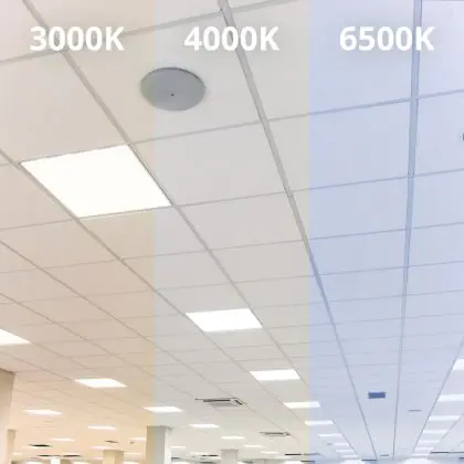 Je kunt bij dit zuinige Noxion LED paneel kiezen voor drie soorten kleurtemperatuur (Kelvin). Bij dit exemplaar betreft dat 3000 Kelvin, en dat geeft een warm wit licht. Deze lichtkleur is vooral geschikt voor ruimtes waar de sfeer als prettig en ontspannen wordt ervaren. Denk daarbij aan een wachtruimte, een aula, een kantine, of een ontvangstruimte (balie). Heb je meer baat mij een koelere kleurtemperatuur, kies dan voor 4000 Kelvin (koel wit) of eventueel voor 6500 Kelvin. Dat geeft natuurlijk daglicht af.