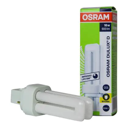 De Dulux D serie van A-merk Osram staat bekend om de betaalbaarheid, natuurlijke kleurweergave en uitstekende lichtopbrengst. Met een wattage van 10W verbruik je met deze Osram Dulux D spaarlamp ook minder vergeleken met conventionele gloeilampen!