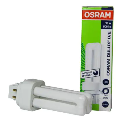 De Osram Dulux D/E is enkel te gebruiken in combinatie met een elektronisch voorschakelapparaat. De lichtbron is dimbaar. Elke compacte fluorescentielamp reeks heeft een basistype G24q-1 lampvoet met 4 pinnen. De lampen Osram Dulux D/E 10W 840 hebben een afmeting van 103 cm.