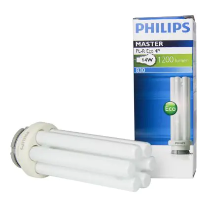De Philips PL-R Eco 4P zijn bijzonder geschikt voor ruimtes waar verlichting dag en nacht brand. De lampen hebben een GR14q-1 lampvoet en zijn 12,5 cm lang. Houdt u rekening met uw huidige wattage, elk wattage heeft namelijk een andere lengte. Daarbij heeft de lichtbron energielabel A. De levensduur is 24000 branduren. Als de lamp begint te knipperen en moeizaam opstart, is deze aan vervanging toe.