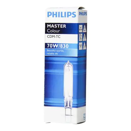 De Philips CDM TC lampen bevatten een UV filter, waardoor weinig verkleuring van de objecten optreedt. De Philips CDM-TC 70W 830 G8.5 (MASTERColour) is een compacte gasontladingslamp met een G8.5 lampvoet. De makkelijke lampvoet maakt het mogelijk om uw lamp eenvoudig te verwisselen. Het is niet mogelijk om deze lampen te dimmen.